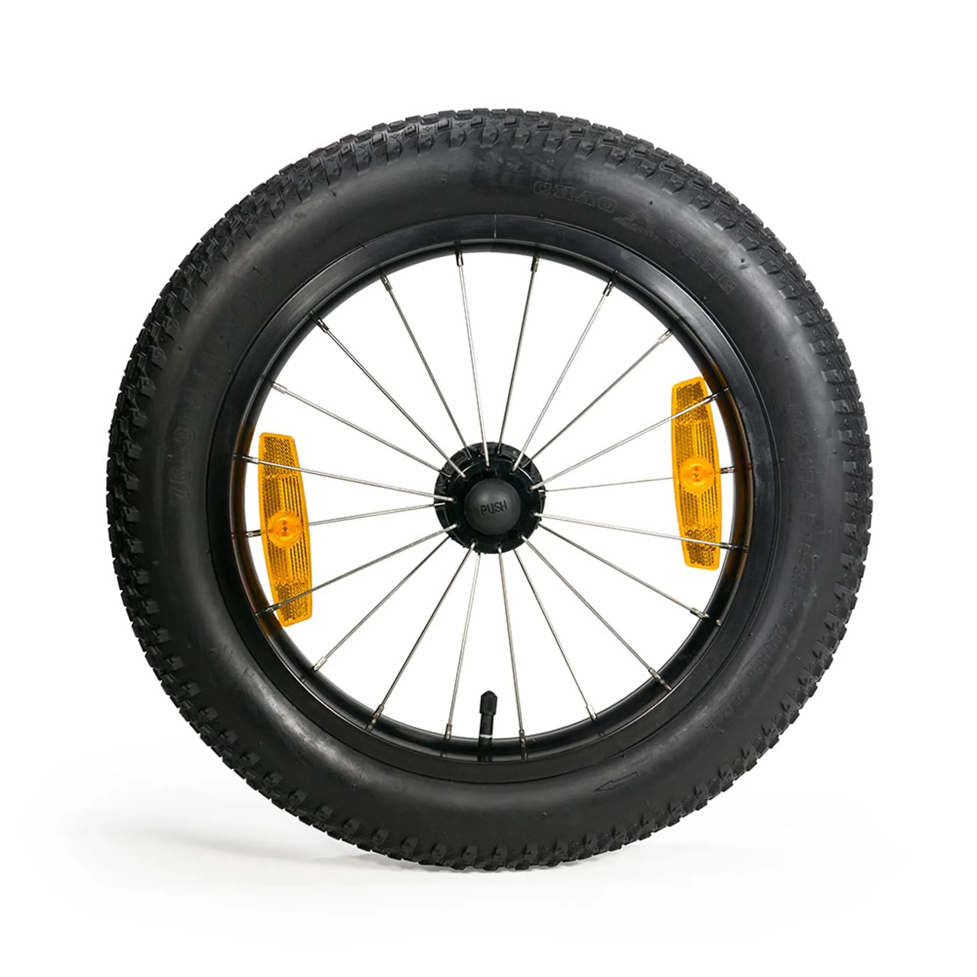 The 16+ wheel kit is a must for adventures off the bike path. The kit includes two 16 x 3" tyres with a wider, more rugged tread for superior handling on sand, gravel, snow, and other uneven surfaces. Expand your adventure options and cover more terrain with this sturdy conversion kit.