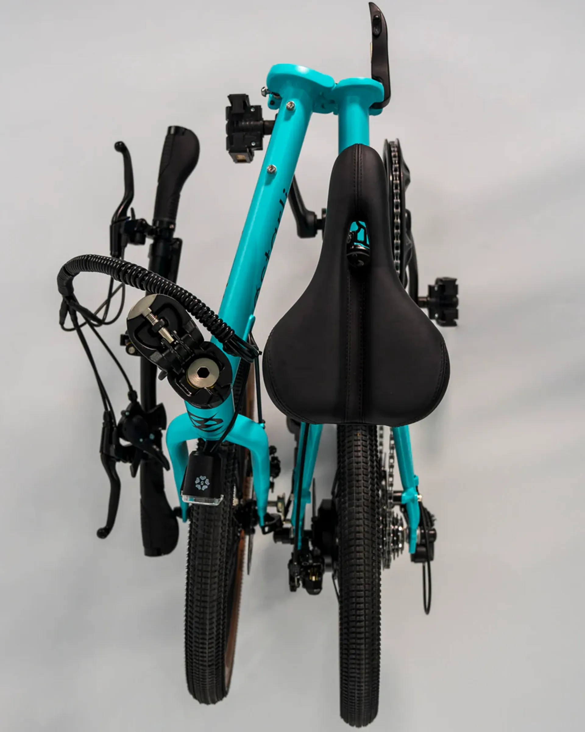 Folding stem, frame and pedals. A fully folding E-bike
